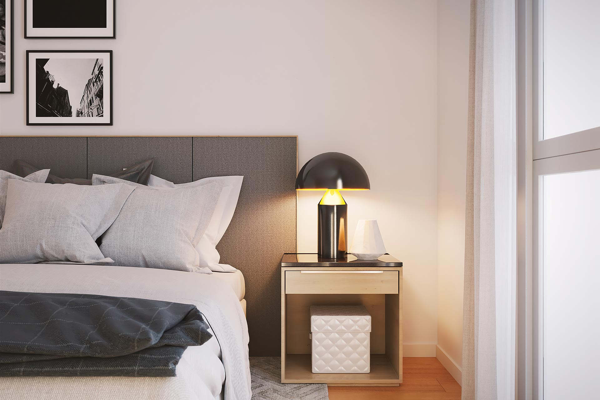 Iluminación general en zonas comunes interiores y exteriores, con luminarias tipo LED de excelente eficiencia luminosa. Downlight led de perfil bajo en cocinas y baños. Mecanismos eléctricos de marca Legrand o similar en el interior de la vivienda, compatible con el “Internet de las cosas”.