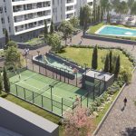 Piscina con sistema de depuración, filtrado con sistemas de cloración salina y renovación de agua. Zonas ajardinadas, zona de juegos con suelo de caucho para los más pequeños y pista de pádel.